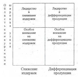 Необходимо отметить, что сформулированные в ней общие стратегии конкуренции до настоящего времени считаются многими исследователями в области стратегического планирования наиболее работоспособными инструментами в практической деятельности современных фирм