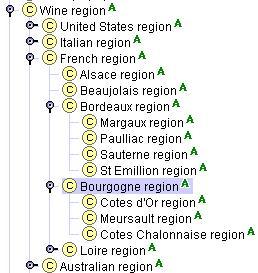 На рис. 2 показана часть иерархии классов онтологии по винам. В 4-й главе детально рассмотрено, что нужно искать при определении иерархии классов.