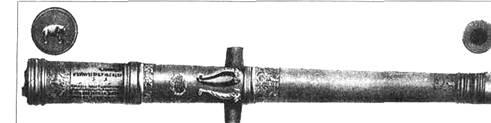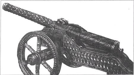 был распространен обычай украшать пушки орнаментами, надписями, отличительными скульптурами, от которых они часто получали свое название: «Аспид», «Лев», «Барс», «Гамаюн» и т.п. (рис.1). В этом, как и в других отличиях, проявлялось своеобразное соперничество между литейщиками. Характерно, что старейшая из дошедших до наших дней русских литых пушек (1492 г.) не имеет цапф и скоб, но ее дуло и торец украшены орнаментом. Богато украшались вначале и появившиеся позже лафеты (рис.2). Так что пушки также можно причислить к разряду художественных отливок прикладного назначения.