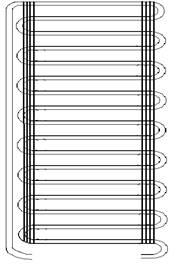 Трубы змеевика на листе обычно располагают горизонтально. В некоторых листотрубчатых конденсаторах их располагают вертикально, чтобы последние витки трубопровода не нагревались от кожуха компрессора. Длина трубопровода конденсатора составляет 6500-14000 мм.