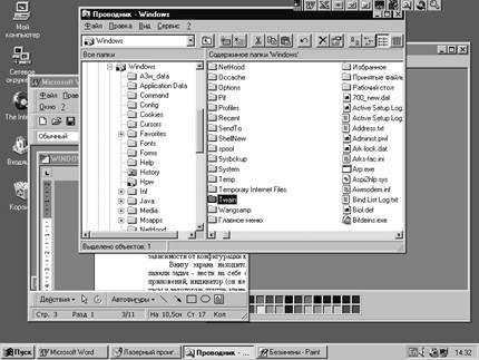 WINDOWS 95 - интегрированная среда, обеспечивающая эффективный обмен информацией между отдельными программами и предоставляющая пользователю широкие возможности работы с мультимедиа, обработки текстов, графической, звуковой и видеоинформации. Интегрированость подразумевает также совместное использование ресурсов компьютера всеми программами.
