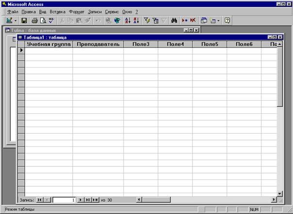 Все составляющие базы данных, такие как таблицы, отчеты, запросы, формы и объекты, в Access хранятся в едином дисковом файле. Основным структурным компонентом базы данных является таблица. В таблицах хранятся вводимые нами данные. Внешне каждая таблица Access похожа на таблицы, с которыми мы привыкли работать на бумаге, - она состоит из столбцов, называемых полями