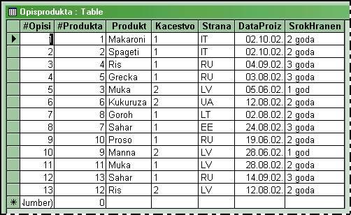 В таблице «OPISPRODUKTA» представлены некоторые данные о продукте, которые не были включены для общего обозрения в таблице «PRODUKT», такие как: