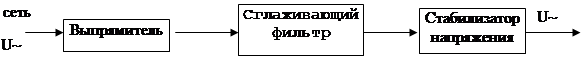 Электронные приборы и устройства требуют для своего питания стабильного напряжения постоянного тока. В большинстве практических случаев такое напряжение получают из переменного напряжения сети с помощью вторичных источников питания, включающих выпрямитель сетевого напряжения, сглаживающий фильтр и стабилизатор напряжения (рис. I).