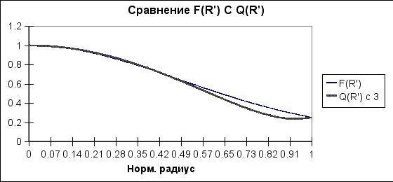 Если ограничится тремя членами полинома, т.е. положить m=2, нормированная диаграмма направленности параболоидного зеркала опишется выражением .