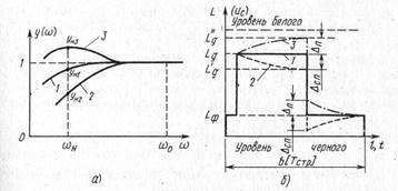 Рисунок 1.1-Искажения АЧХ в области высоких частот полосы пропускания тракта передачи ТВ сигнала (а) и его ПХ в области малых времен (б)