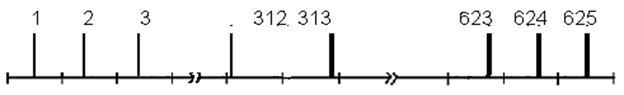 Определим параметры помехи. Для этого каждой составляющей помехи, представленной на рисунке 4.3, приведем временную диаграмму, на которой покажем расположение помехи в различных строках растра. Кроме этого определим их частоты и построим амплитудные спектры. Временная диаграмма для первой помехи показана на рис.4.4.