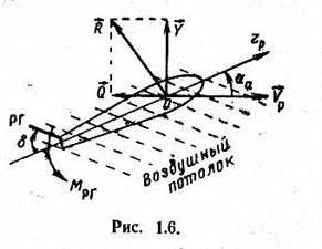 , создаются соответственно с помощью руля высоты РВ и руля поворота РП. Принцип действия каждого из этих рулей аналогичен описанному выше принципу действия руля глубины. При отклонении руля высоты корпус аппарата поворачивается вокруг оси yр