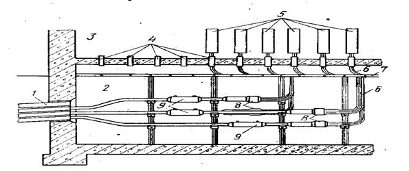 труб, 8-распределительный шкаф, 9-этаж, 10-дверь, 11-колодец.