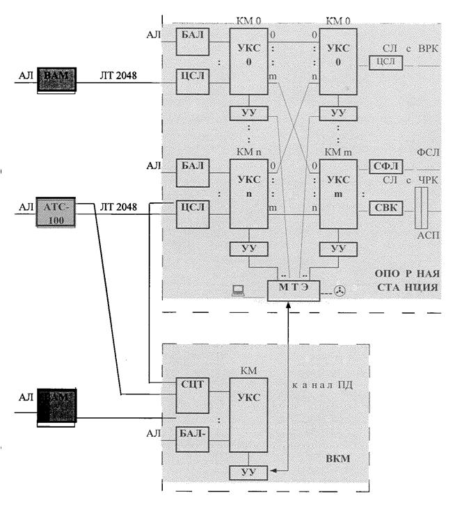 В опорную станцию или выносной коммутационный модуль могут включаться ВАМ на базе БАЛК АТС-200 и АТС-100.