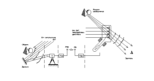 Одновременная передача. При одновременной передаче могут наблюдаться два случая, в зависимости от требуемого базиса. Если поставленная задача требует большого базиса, необходимо иметь две передающие камеры, разнесенные на требуемое расстояние. Передача должна происходить или через два самостоятельных передатчика, или через один при наличии соединительных каналов. Обычно используют одну камеру с двумя передающими трубками.