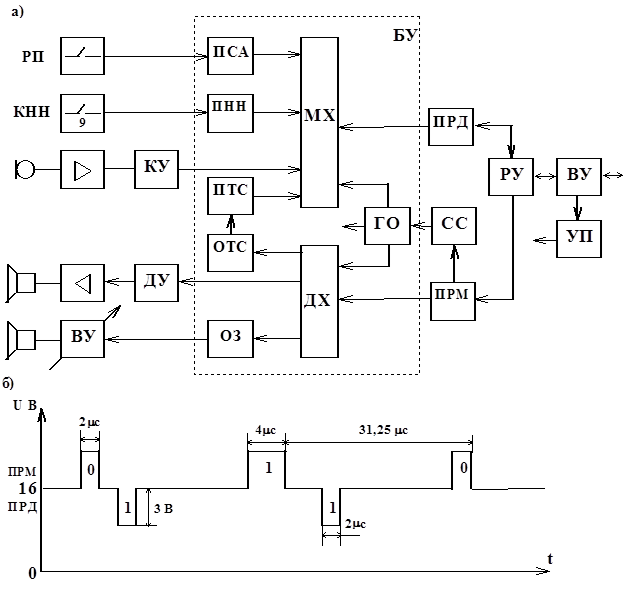 1. а) Структурная схема цифрового телефонного аппарата , б) Временные диаграммы , поясняющие работу ЦТА .