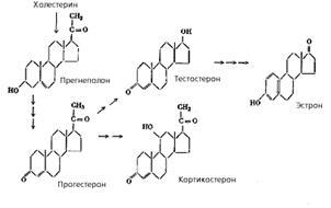 Образование некоторых стероидных гормонов