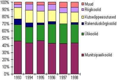 Образование в Эстонской Республике приобретается путем посещения, определенных в Законе, учреждений народного образования, каковыми являются дошкольные заведения, обшеобразоватльные школы, профессиональные учебные заведения, высшие прикладные школы, университеты, школы по интересам, курсы пофышения квалификации, а также научно-методические учреждения. Закон также определяет, что все учебные учреждения могут базироваться на всех формах собственности, не протеворечащих Закону «О собственности», где базирующиеся на государственной и муниципальной собственности, за исключением университетов, называются «открытыми».