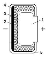 4 – картон, пропитанный электролитом; 5 – полихлорвиниловая плёнка.
