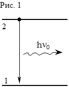 Возбуждённая частица может перейти в менее энергетическое состояние самопроизвольно в результате спонтанного излучения, или, как его ещё называют, радиационного распада (рис. 1). Спонтанное излучение имеет чисто квантовую природу. Согласно квантовой механике атом или молекула не могут находиться в возбуждённом состоянии бесконечно долго. Возбуждённое состояние распадается с конечной скоростью, определяемой вероятностью этого перехода в единицу времени , испуская при этом квант света с энергией hn0