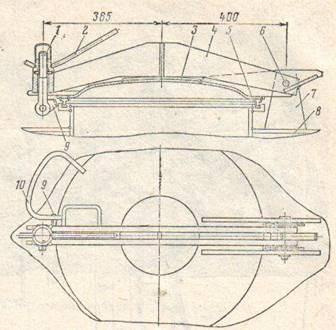 типа ЦНИИ-ХЗ-О, связанных соединительной балкой 2. Эта балка снизу по концам имеет пятники и скользуны, которымиона опирается на подпятники и скользуны надрессорных балокдвухосных тележек. Сверху в средней части соединительной балки расположены подпятник диаметром 450мм, на который опирается пятник рамы кузова, и скользуны, поддерживающие кузов при действии боковых сил.