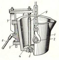 удаляется шлак, а через летку 11