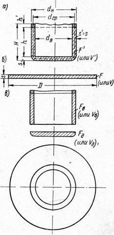 Для определения размеров заготовки будущего корпуса масляного фильтра для автомобилей ВАЗ 2101-2106, необходимо использовать метод равенства объёмов, так как толщина боковых стенок отличается от толщины дна и исходной заготовки (т. к. s
