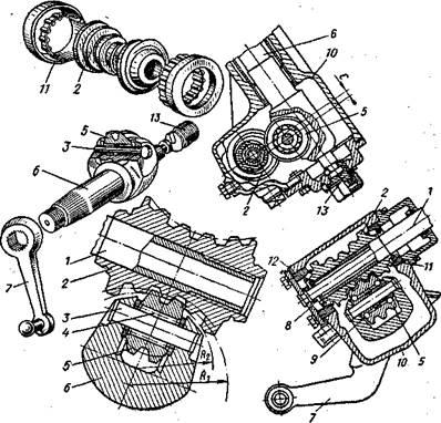 Такой рулевой механизм состоит из стального глобоидального (т. е. с вогнутой поверхностью) червяка 2