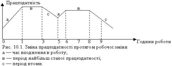 Важливим завданням у поліпшенні організації праці є встановлення найдоцільніших режимів праці та відпочинку. Розрізняють змінний, добовий, тижневий та місячний режими праці та відпочинку. Вони формуються з урахуванням працездатності людини, яка змінюється протягом доби (рис.1), що береться до уваги передусім у змінному та добовому режимах.