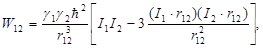 Энергия диполь-дипольного взаимодействия двух магнитных моментов m1