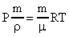 ; . От уравнения (26) для моля газа можно перейти к уравнению Менделеева-Клапейрона для любой массы газа m. Отношение дает число молей газа. Левую и правую части неравенства (26) умножим на . Имеем , где объем газа). Окончательно запишем: 27). Уравнение (27) - уравнение Менделеева-Клапейрона. В это уравнение можно внести плотность газа и . В формуле (27) заменим V и получим или (28).