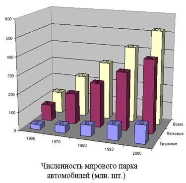 Автотранспорт является источником загрязнения атмосферы, количество автомашин непрерывно растет (диаг. 1.1), особенно в крупных городах; а вместе с этим растет валовой выброс вредных продуктов в атмосферу.