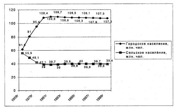 Всего за 60 лет Советской власти - с 1927 по 1988 г. население сельских регионов сократилось с 76 до 39 млн. человек. Альтернативы этому процессу не было: вплоть до начала 90-х годов остаться в деревне и вести хозяйство отдельно от колхоза было просто невозможно, так как крестьянин не мог распорядиться урожаем (отсутствовал рынок), а земля принадлежала коллективным хозяйствам. Исключение составляли личные подсобные хозяйства (приусадебное землепользование), на которых выращивалась продукция для личного потребления. Эти хозяйства получили распространение только в 70-х годах.