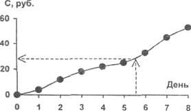 По графику в любой момент времени процесса изготовления изделия легко установить стоимость конкретного незавершенного образца.
