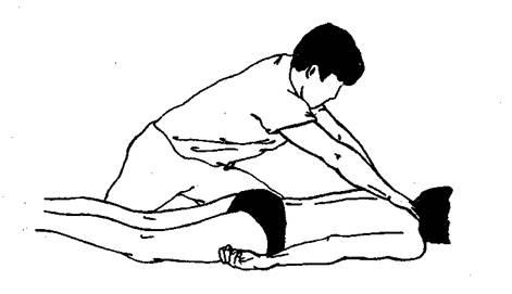 Затем оценивают состояние трапециевидных мышц. Если выявляется асимметрия тонуса верхней порции трапециевидных мышц, укороченную напряженную мышцу растягивают, выполняют приемы мягкого плавного разминания, а расслабленную — разминают резкими отрывистыми надавливаниями, оттягиваниями, пощипываниями.