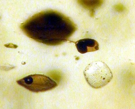 После того, как включение появиться на поверхность зерна, полировку надо было продолжать на алмазной пасте 5/7. До тех пор пока вся поверхность образца не станет достаточно ровной и гладкой (насколько позволяет данная паста). Контроль над качеством поверхности, проводился с помощью рудного микроскопа в отраженном свете.