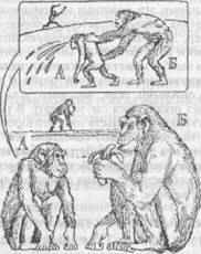 В результате накопления такой информации и непосредственного опыта детеныш в конце концов выучивается «правильно вести себя» в различных ситуациях и предвидеть возможное влияние поведения — его собственного и союзников на других животных. Например, если детеныш видит, что обезьяна В атакует Г, он понимает, что Г может повернуться и напасть на него самого (на рис. 7 это изображено как «мысленное представление» у А), т.е. переадресовать агрессию. Если А способен предвидеть такой поворот событий, то он может избежать нападения Г: не попадать под горячую руку. Более того, если А, наблюдая взаимодействия между В и Г, понял, что В старше по рангу, то он сообразит, что В — более выгодный для него союзник против Г, чем Г как союзник против В. Накапливая такой опыт, детеныш шимпанзе приобретает способность ловко лавировать в самых разных ситуациях.