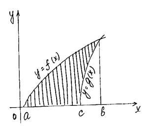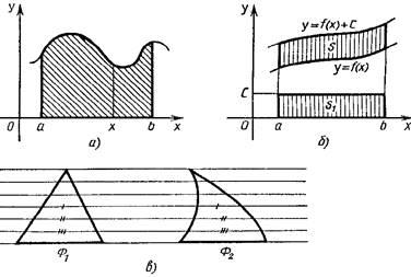 Пусть требуется найти площадь фигуры, изображенной на рисунке 1,б, где кривые, ограничивающие фигуру сверху и снизу, имеют уравнения y = f(x) и y=f(x)+c.