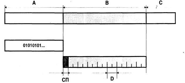 которая состоит из 576 чередующихся 0 и 1 Длина преамбулы неслучайна - она равна длине блока плюс длина одного слова. После преамбулы передаются адрес пейджера и собственно сообщение, которое может занимать несколько последовательных блоков. Общая структура посылки показана на следующем рисунке:
