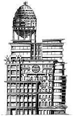 привлекательная идея была немедленно разработана мастерской Ткаченко в серии рисунков, причудливо помещавших многоэтажное яйцо на подставке из античных колонн в библейский пейзаж. Трудно сказать, будет ли разработка когда-нибудь воплощена, но в архитектурной истории Москвы конца ХХ века она, думается, останется. В ней присутствуют заостренная символика формы, элементы интеллектуального гротеска и в то же время некоторой образной прямолинейности - качества, по которым стосковалась наша архитектура, тонущая в море приторной, напыщенной и пустой эклектики.