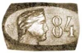 Так, на рис.5, изображено поддельное клеймо по типу рис.1, с совершенно неудавшейся уродливой головкой. Еще хуже подделка на рис.6, по типу рис.3; в наляпанном кусочке рельефного металла в левой части штампа трудно даже уловить какое-либо сходство с человеческою головой. Тем не менее, подобные подделки часто и легко сбываются в продаже, благодаря тому, что рисунки пунсонов редко кому известны, и рассмотреть их можно только в лупу.