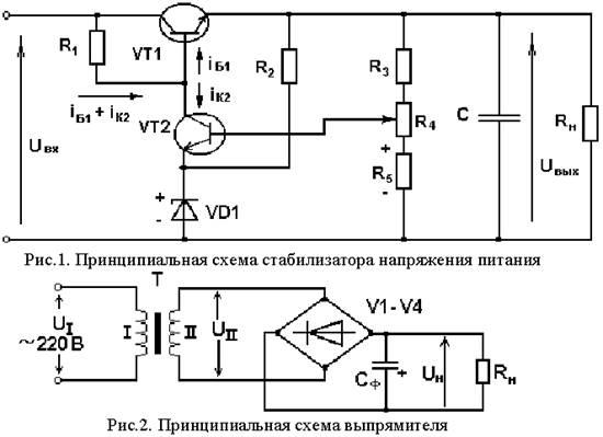Принципиальная схема компенсационного стабилизатора напряжения приведена на рис.1 приложения 3.
