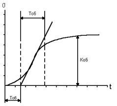 Кривая разгона САР температуры показывает, что объект инерционный, статический и имеет запаздывание, так как запаздывание незначительно. В дальнейшем исследовании им можно пренебречь. Тогда передаточная функция объекта будет иметь следующий вид: