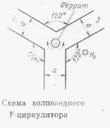 и ниже часто используются Y-циркуляторы, образованные не волноводами, а полосковыми линиями. Благодаря своей компактности и простоте конструкции Y-циркуляторы находят на практике широкое применение.