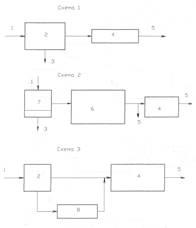 В первом способе (схема 1) предусматривается регулирование расхода стока за счет устройства на коллекторах дождевой канализации раздельных камер. В этом случае на очистку направляется сток от мало интенсивных дождей и часть стока с определенным расходом от интенсивных дождей, а остальная часть сбрасывается без очистки.