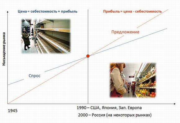 Так вот коренное отличие старой и новой экономике заключается в различном понимании качества. Разное понимание следует из того, что в старой экономике «спрос превышал предложение» (диктат производителя), а в новой, наоборот, очевиден диктат потребителя. И работать в старых и новых условиях - это как говорят «две большие разницы». В разных странах и на разных рынках этот переход случается в разное время. В развитых странах, такой переход, начался в восьмидесятых годах прошлого века. Совсем немного времени спустя появился первый стандарт ИСО, зафиксировавший новую практику. В России такой переход, причем на немногих конкурентных внутренних рынках, происходит только сейчас.