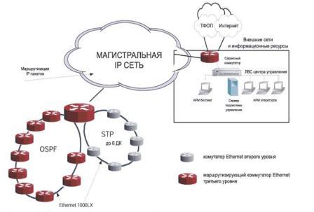 Городская сеть оператора должна предоставлять услуги по передаче данных между клиентами на базе протоколов TCP/IP. Объединение различных подсетей корпоративных клиентов также происходит с помощью передачи IP-пакетов через сеть оператора.