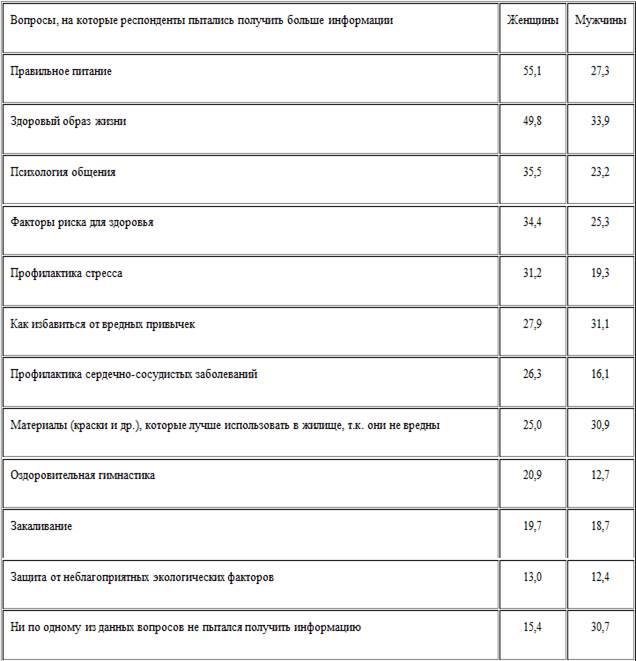 Интерес к информации по проблемам здоровья и здорового образа жизни – показатель внимания к своему здоровью и фактор оздоровления условий своей жизни. В таблице 7 представлены данные о стремлении к получению информации, касающейся сохранения здоровья.