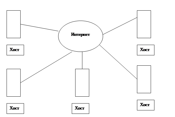 Сіть Інтернет приховує деталі з'єднань сітей між собою, тому з погляду кінцевих користувачів і по відношенню до прикладних програм сіть Інтернет є єдиною віртуальною сіттю, до якої приєднані всі комп'ютери – незалежно від їх реальних фізичних з'єднань (мал. 1). Кожний комп'ютер повинен мати програмне забезпечення доступу до сіті Інтернет, яке дозволяє прикладним програмам використовувати сіть Інтернет як одну фізичну сіть.