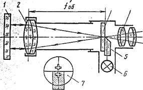 Широкоугольный коллиматор, схема которого показана на рис.7 имеет объектив “Индустар” И-51: 2β=45°; f´=210 мм относительное отверстие 1:4,5.