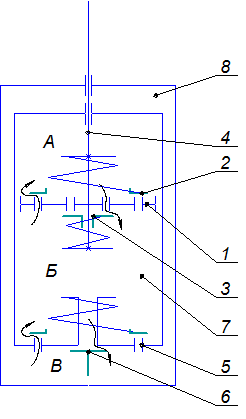 1 - стальной упругий элемент; 2 - резиновый буфер-ограничитель; - деформация стального упругого элемента; - совместная деформация стального и резинового упругих элементов
