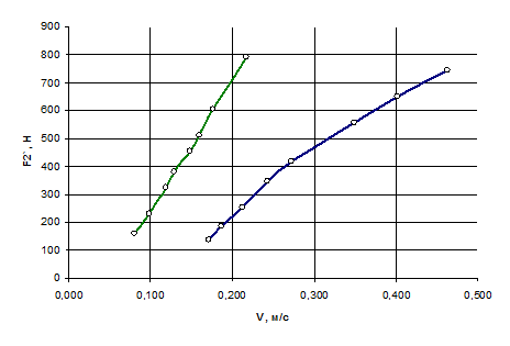 Рисунок 3 – Экспериментальная сило-скоростная характеристика амортизатора.