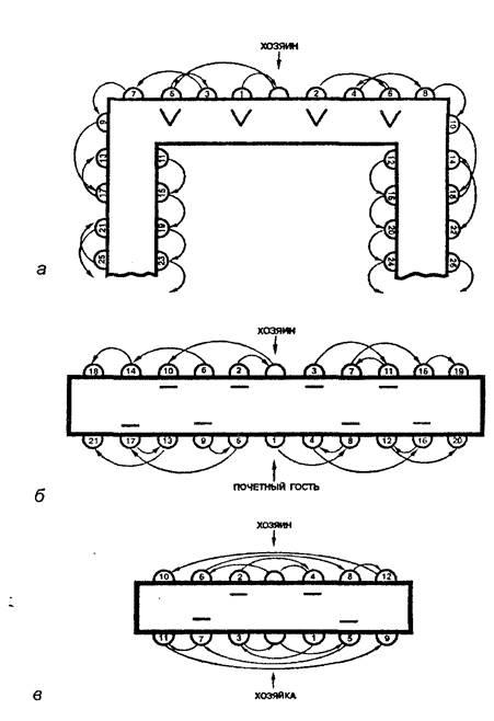 – банкеты с такой формой обслуживания являются наиболее распространенными и носят неофициальный характер. Они проводятся по случаю семейного торжеств, свадьбы, встречи друзей, юбилея. В отличие от официального банкета за столом полным обслуживанием официантами на неофициальных банкетах гости за столом размещаются произвольно. Однако места в центре стола предусматриваются для почетных гостей и устроителя банкета. Если на банкет приглашено много гостей и для них устраивают несколько столов, то почетные гости и устроитель банкета садятся за отдельный, центральный стол.