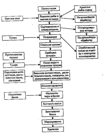 Баночную зернистую икру приготовляют из икры-сырца по технологической инструкции с соблюдением Санитарных норм и правил министерства здравоохранения.